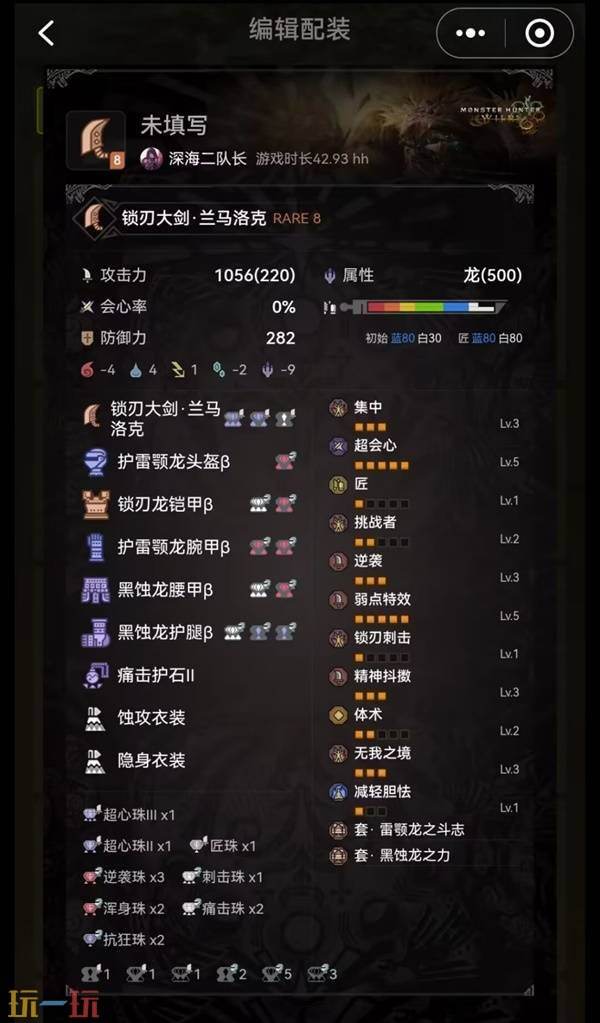 防具:推荐搭配提升会心与攻击力的防具,如狂龙系列与挑战者系列。