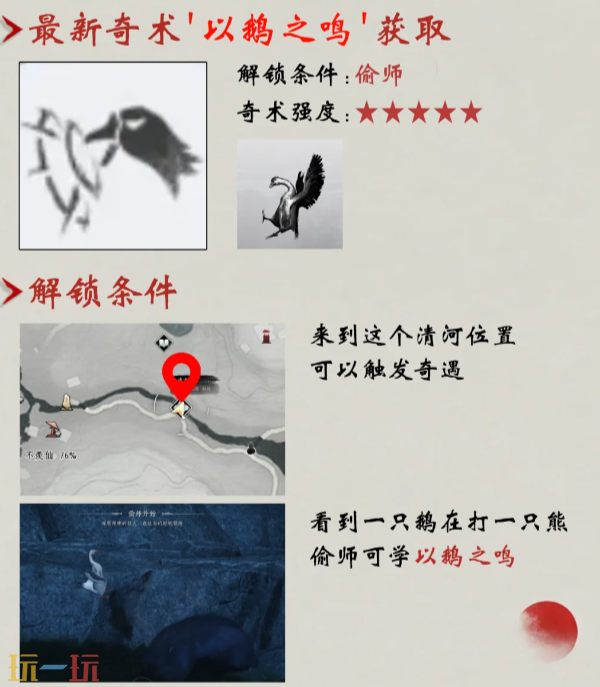前往清河位置触发奇遇,观看一只鹅与熊的打斗,偷师学习新奇术“以鹅之鸣”。