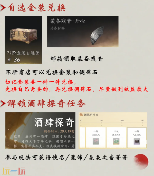 在不肝商店兑换金装和调律石,优先兑换所需金装,再兑换调律石,以最大化收益。