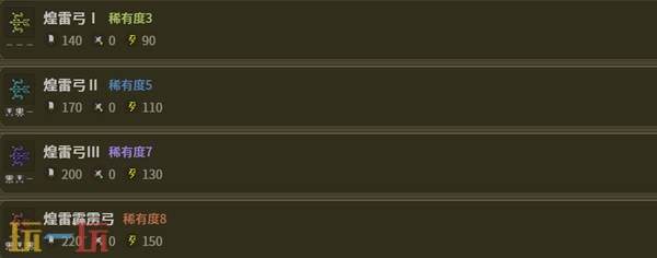 煌雷弓Ⅰ→煌雷弓Ⅱ→煌雷弓Ⅲ→煌雷霹雳弓: